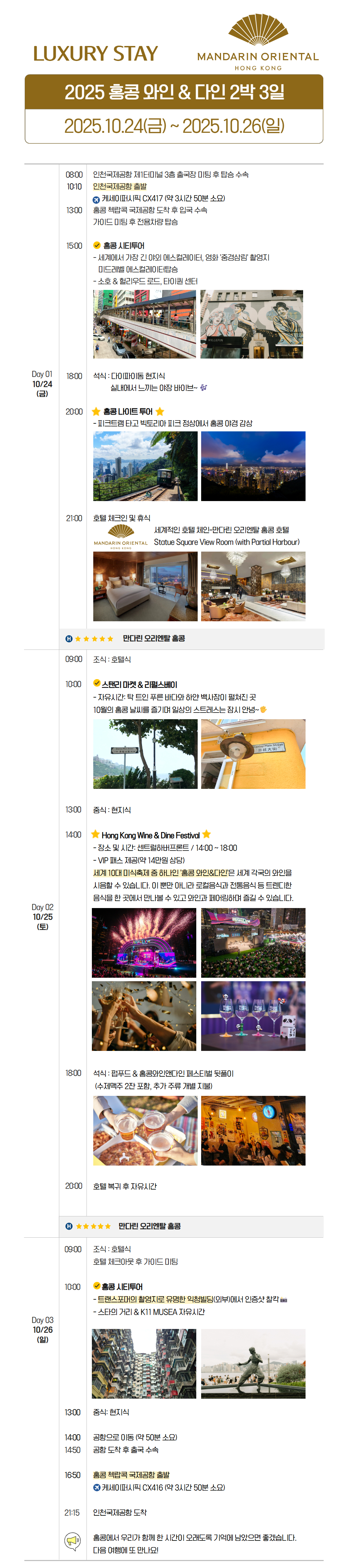 홍콩 와인앤다인 + 초특급 만다린오리엔탈호텔 업그레이드 3일