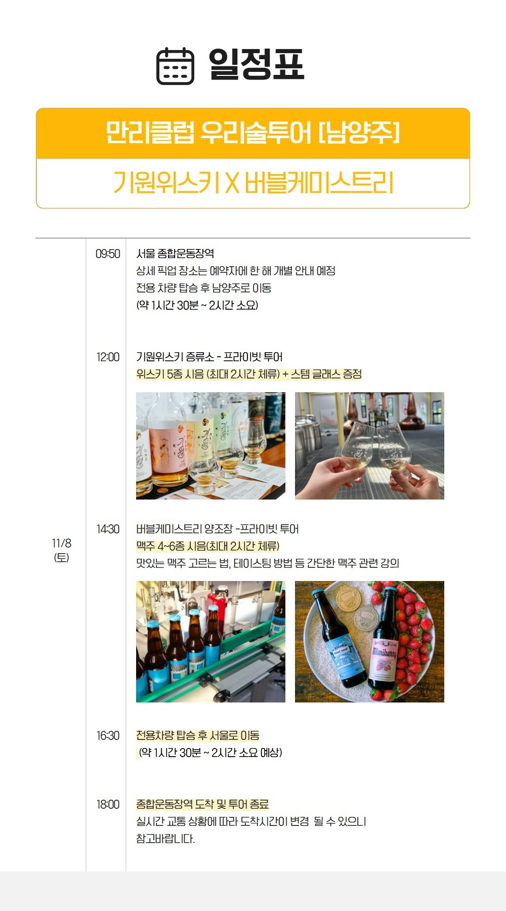 -프라임 시간대 12시 확보 완료, 증류소 투어 무려 2시간 진행